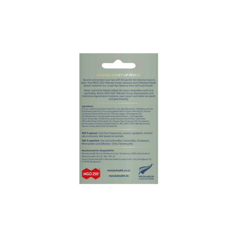 Mānuka Honey Lip Balm is a smooth and nourishing balm to soften and restore dry, chapped lips. Made with premium Mānuka Honey, beeswax and pure plant oils, this natural balm helps protect the lips against dehydration.